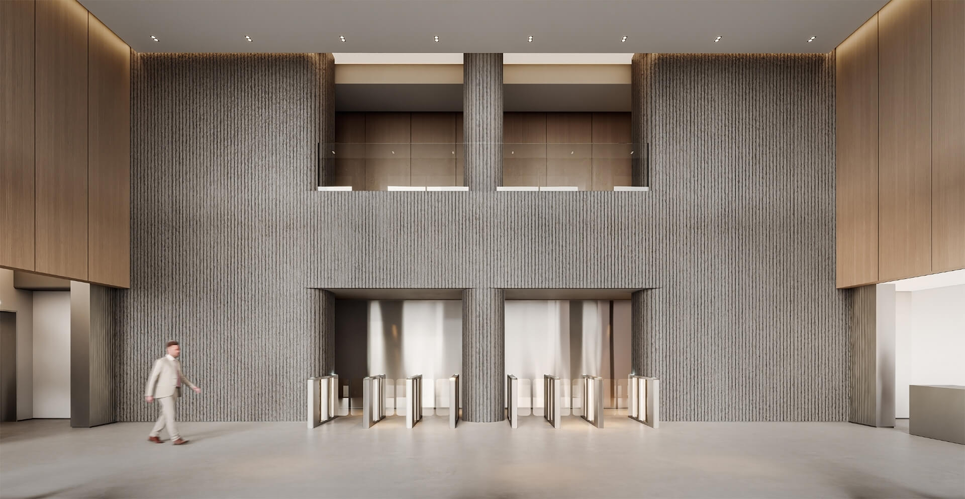 Лобби бизнес-центра «STONE Ходынка» — это пространство, которое задает тон премиальному уровню всего комплекса. Просторные двусветные холлы с высотой потолков до 8 метров и панорамным остеклением создают ощущение легкости и слияния с природой Ходынского парка. Естественное освещение и изысканный интерьер подчеркивают статус и современность проекта.