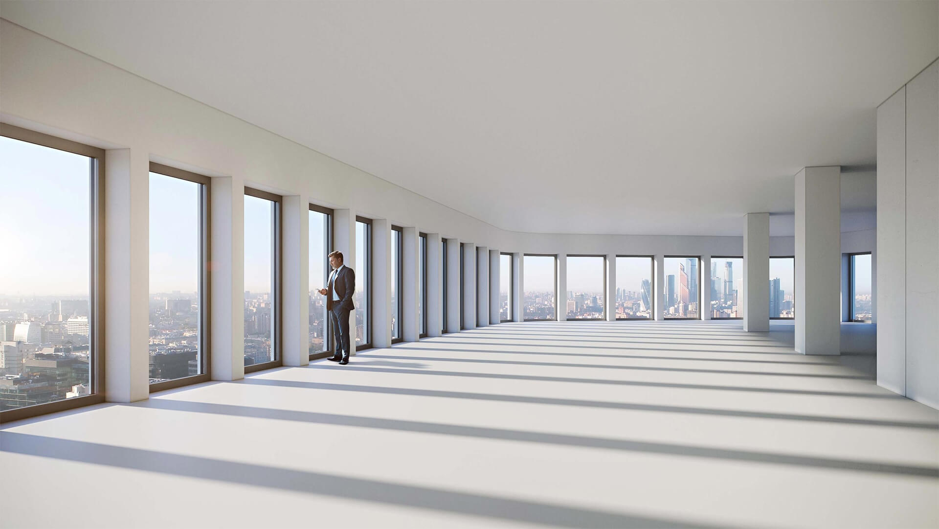 В лобби расположена «парящая» галерея — уникальная зона, объединяющая ресторан с видовой террасой, арт-галерею и free working пространства. Эти зоны созданы для отдыха, неформальных встреч и продуктивной работы, отвечая всем требованиям резидентов бизнес-центра.